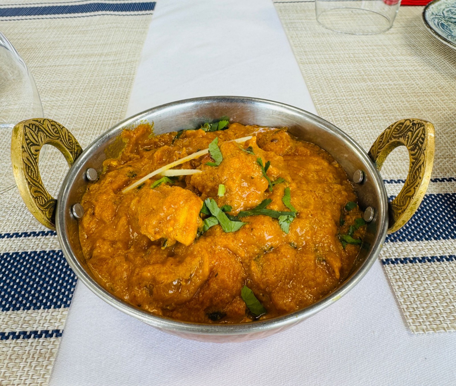 A traditional Nepali curry with prawns cooked in mustard oil and spices – medium hot